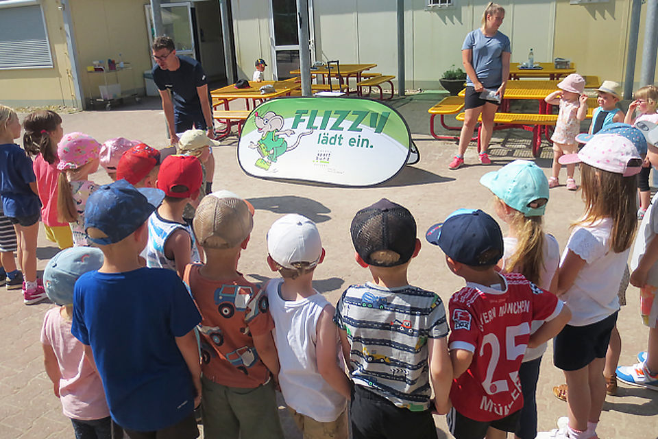 Am 21. 06. 2023 wurde den Kita - Kids von der Sportmaus „FLIZZY“ und auch vom strahlenden Sonnenschein ordentlich eingeheizt. Auf dem Programm standen 7 Stationen, an denen sich die Mädchen und Jungen ausprobieren konnten: Standweitsprung, Zielwerfen, Rumpfbeugen, Pendellauf, Balancieren, Springen und Rollen.