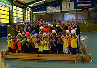 14.04.2015: In der Erzgebirgshalle Lößnitz trafen sich die 4- und 5-jährigen Kinder der DRK Kitas, um gemeinsam mit den Spielern des EHV Aue Sport zu treiben.