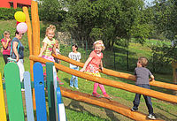 18.09.2014: „Die keinen Sonnenstrahlen“ freuen sich über die teilweise Neugestaltung ihres Außengeländes und die Einweihung neuer Spielgeräte.