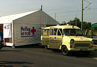 10.09.2014: Kameradinnen und Kameraden des DRK Aue-Schwarzenberg waren in verschiedenen Bereichen beim Tag der Sachsen in Großenhain vertreten.