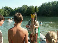 10.07.2014: Die Mitglieder der Wasserwacht sichern nicht nur den Badebetrieb ab sondern sorgen auch für Spaß unter den Besuchern.