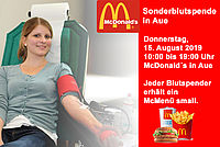 Der DRK Blutspendedienst und die Kameraden des DRK Kreisverbandes Aue-Schwarzenberg e.V. laden ein zur großen Sommer-Blutspendeaktion bei McDonald´s in Aue.